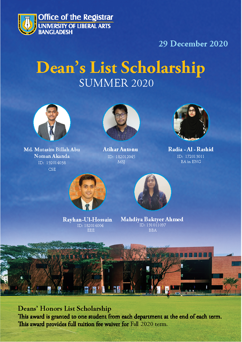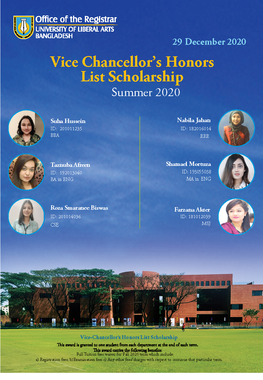 The Office of the Registrar is pleased to announce the winners of the Vice Chancellor’s and Dean’s Honors List Scholarships, Summer 2020.