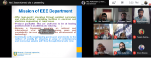 The Department of EEE organized Virtual Freshers’ orientation, Spring 2021 on 25 February 2021. The platform of the workshop was Google Meet. The program was graced by the presence of Prof. Dr. H M Jahirul Haque, Honorable Vice-Chancellor of ULAB, Prof. Dr. Mohammad Rezwan Khan, Honorary Advisor, Dept. of EEE, and Prof. Dr. M. Mofazzal Hossain, Head of the EEE department. All the faculty members of EEE along with freshers and current students attended the program. Documentaries regarding the library, the department of EEE, and course-related information were presented. The speakers welcomed the new students to ULAB, encouraged and motivated the freshers through their speeches. Prof. M. Mofazzal Hossain, Head of the EEE department, delivered the vote of thanks at the end of the event.
