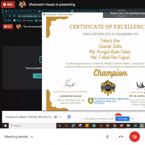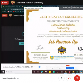 “EEE Virtual Project Showcasing – Spring 2021” organized by the Dept. of EEE, ULAB and ULAB Electronics and Robotics Club (UERC)