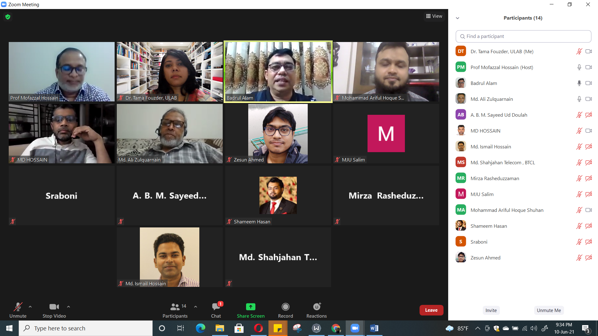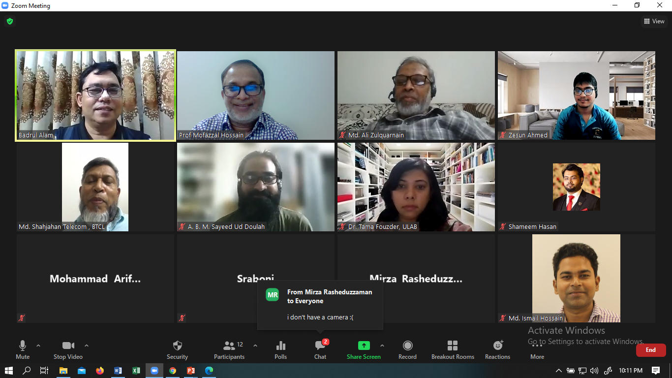 Industry-academia collaboration is of paramount importance in engineering for the successful integration of theoretical and practical knowledge. Keeping that in mind, the Department of EEE, ULAB, organized the “Industry Advisory Panel Meeting – Spring 2021” on 10 June 2021 during 8.30 – 10.30 pm. The meeting held on the online “Zoom” platform. The event was moderated by Prof. Dr. M. Mofazzal Hossain, Head of EEE, ULAB. Some prominent industry personalities like Engr. Md. Ali Zulquarnain, former Chairman, Bangladesh Atomic Energy Commission (BAEC); Engr. Md. Shahjahan, Deputy Managing Director (Corporate Affairs), BTCL; Engr. Md. Badrul Alam, Superintendent Engineer, Dhaka Power Distribution Company (DPDC); Engr. Md. Ariful Hoque, Managing Director, Reverie Power and Automation Engineering Ltd.; Engr. Md. Shakhawat Hossain, Chief Operating Officer; Engr. Mohammad Jamal Uddin, DGM, Teletalk Bangladesh Ltd. and Md. Ismail Hossain, Manager, Neural Semiconductor attended the meeting. The panel members gave valuable feedback regarding the significance of internships and how the quality of engineering education can be improved by collaborating with the industry. Invited industry advisory panel members showed a positive approach regarding the arrangement of internships for students of ULAB in their organizations. They appreciated the enthusiasm, promptness and quick-learning capability of graduates while working in the industry. They gave importance on guest lectures from industry experts during the semester, especially for the final year students. All the faculty members and admin from the department of EEE were present in the meeting and participated in the discussion. The meeting was ended with a vote of thanks from the Head of EEE.