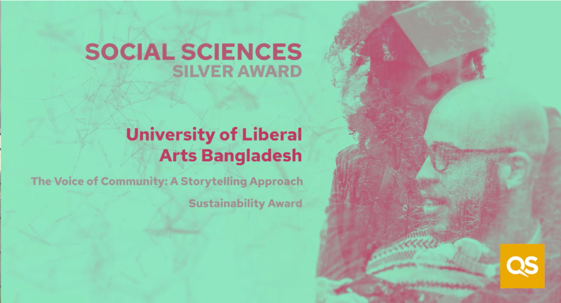 The University of Liberal Arts Bangladesh (ULAB) won the Social Science Silver Award for 2021 in the Wharton–Quacquarelli Symonds (QS) Reimagine Education Awards; otherwise known as the “Oscars of Education.” The ULAB entry is the Dhaka International Mobile Film Festival (DIMFF), which is an outreach program of the Media Studies and Journalism Department. The DIMFF inspires and sparks creativity in storytelling from people with limited income or resources. It encourages filmmakers to harness the immense possibilities of disseminating authentic narratives; supporting communities to tell their own stories, using their own voices. The DIMFF has an executive body and a core team of volunteers who work year-round to ensure the festival's success.