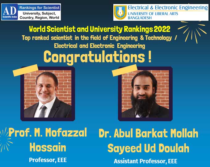 The EEE faculty members of ULAB are featured in the top scientists list by AD Scientific Index 2022.