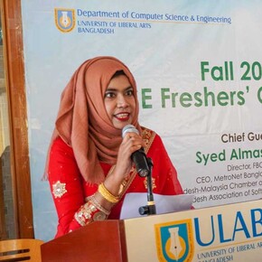 Chief Guest, Mr. Kabir, in his speech shared his life-long experiences among the freshers. He mentioned that specialization is important rather than being a "Jack of all trade, master of none". He focused on the lifelong learning and learning outside the classroom. He advised the freshers to be engaged in different co-curricular activities during their course of study to get familiarize with the real world. The welcome address was delivered by Professor Imran Rahman, Vice Chancellor of ULAB.