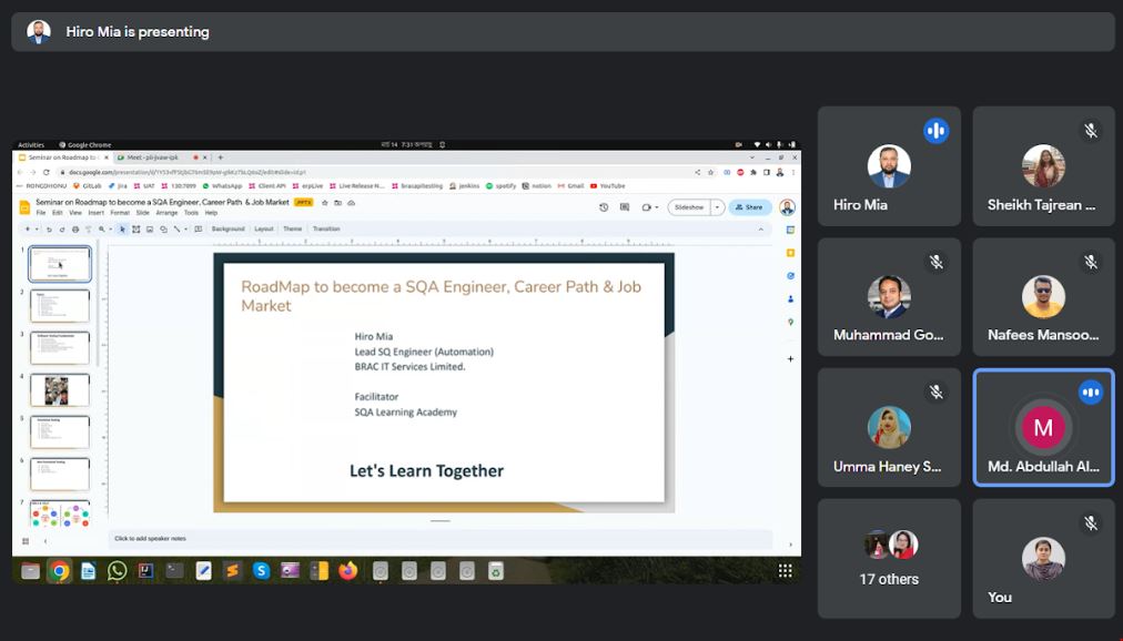 The Department of Computer Science and Engineering (CSE) at ULAB organized a webinar on "Roadmap to become a Software Quality Assurance (SQA) Engineer, Career Path & Job Market" on 14th March 2023. Mr. Hiro Mia, a Lead SQ Engineer (Automation) at BRAC IT provided clear guidelines on SQA engineer career path to the students in the session. He also discussed various features of SQA such as software testing fundamentals, automation testing, career path, and the current job market for SQA engineers. Mr. Hiro Mia, a Lead SQ Engineer has 13 years of Experience as SQAE who developed several custom automation frameworks for all platforms including Web, Mobile & API. Prof. Muhammad Golam Kibria, Head (Acting) of the CSE Department, faculty members and students of the department attended the webinar.