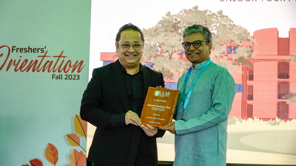 The University of Liberal Arts Bangladesh (ULAB) held an orientation programme for the freshers of the Fall 2023 semester at its Parmanent campus at Mohammadpur, Dhaka yesterday (23 September 2023). Mr. Ghulam Sumdany Don, Chief Inspirational Officer at Don Sumdany Facilitation and Consultancy was the Chief Guest. ULAB Vice Chancellor Prof. Imran Rahman gave the opening remarks.