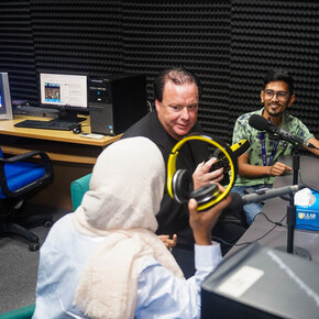 Invited by Vice Chancellor Professor Imran Rahman and Professor Jude Genilo, Pro Vice Chancellor of the University of Liberal Arts Bangladesh (ULAB), Mr. Green was engaged with series of activities in order to comprehend the current state of public relations in Bangladesh and close the gap between local and international practice which includes interview with ULAB Campbuzz Radio and ULAB TV, broadcasted live to the students at ULAB after officiating the opening ceremony of the new campus Broadcast and Social Media Studio.