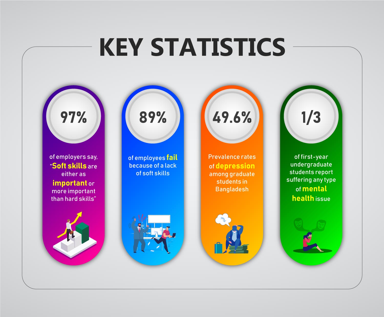 The Essential Skills programme started at ULAB from 2020. The impetus for starting the programme came from the feedback we receive from our stakeholders – employers, parents and the students themselves - that our society needs holistic individuals, not just academic experts. In order to function productively for their society and economy, students need to develop some essential skills alongside the academic knowledge they gather from their course of study at university. It has been found by researchers that soft skills like “people skills” or the ability to get along with others can make or break careers. The Essential Skills program also focuses on the individual and his/ her mental health and wellbeing, which is of crucial importance to survive in this fast-paced world.
