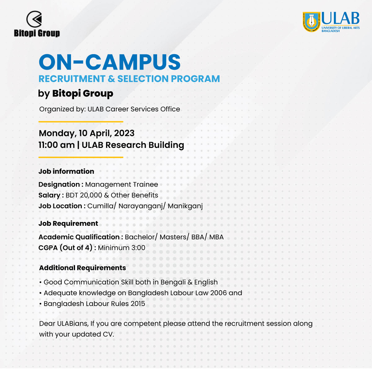 On-Campus Recruitment & Selection Program by Bitopi Group