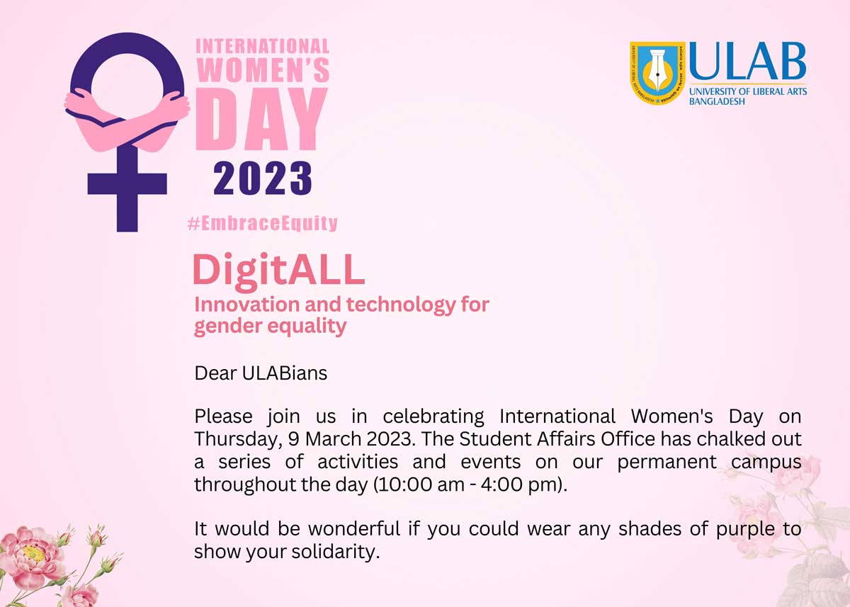 Thank You Note Booth: Note papers will be provided to write down thanking notes to the woman who inspires you most. The booth will be placed in front of Cafeteria, ULAB Permanent Campus.