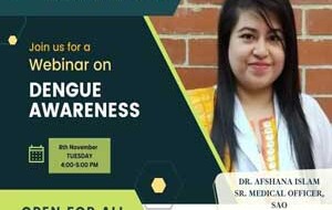 ULAB Social Welfare Club has successfully conducted an online session on “Dengue Awareness'' on November 8th. The session was conducted by Dr. Afshana Islam, SR. Medical Officer, SAO. It was open to all students of ULAB.
