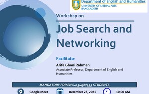The Department of English and Humanities at the University of Liberal Arts Bangladesh organized a workshop on “Job Search and Networking” on December 23, 2021. This is part of a series of workshops designed especially for the department...