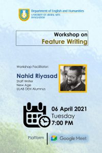 The Department of English and Humanities at ULAB organized an online workshop on feature writing for its students on...