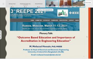 Prof. Dr. M. Mofazzal Hossain delivered a plenary talk in IEEE International Youth Conference on Radio Electronics, Electrical and Power Engineering (3rd REEPE 2021), Moscow, Russia on 11 March 2021. The title of his talk was: “...