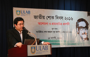 University of Liberal Arts Bangladesh (ULAB) organized a discussion session along with documentary screening titled “Chiranjib Bangabandhu” for commemorating National Mourning Day 2016 on August 14 at its own campus in Dhanmondi.