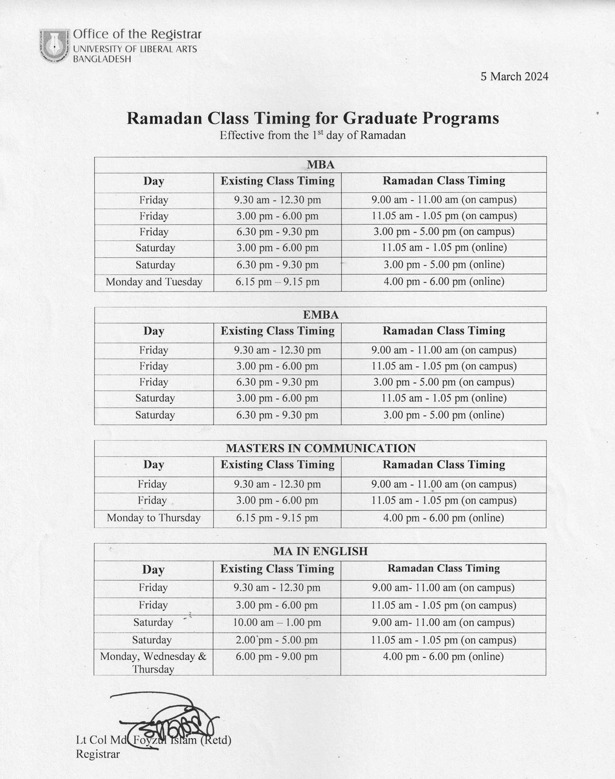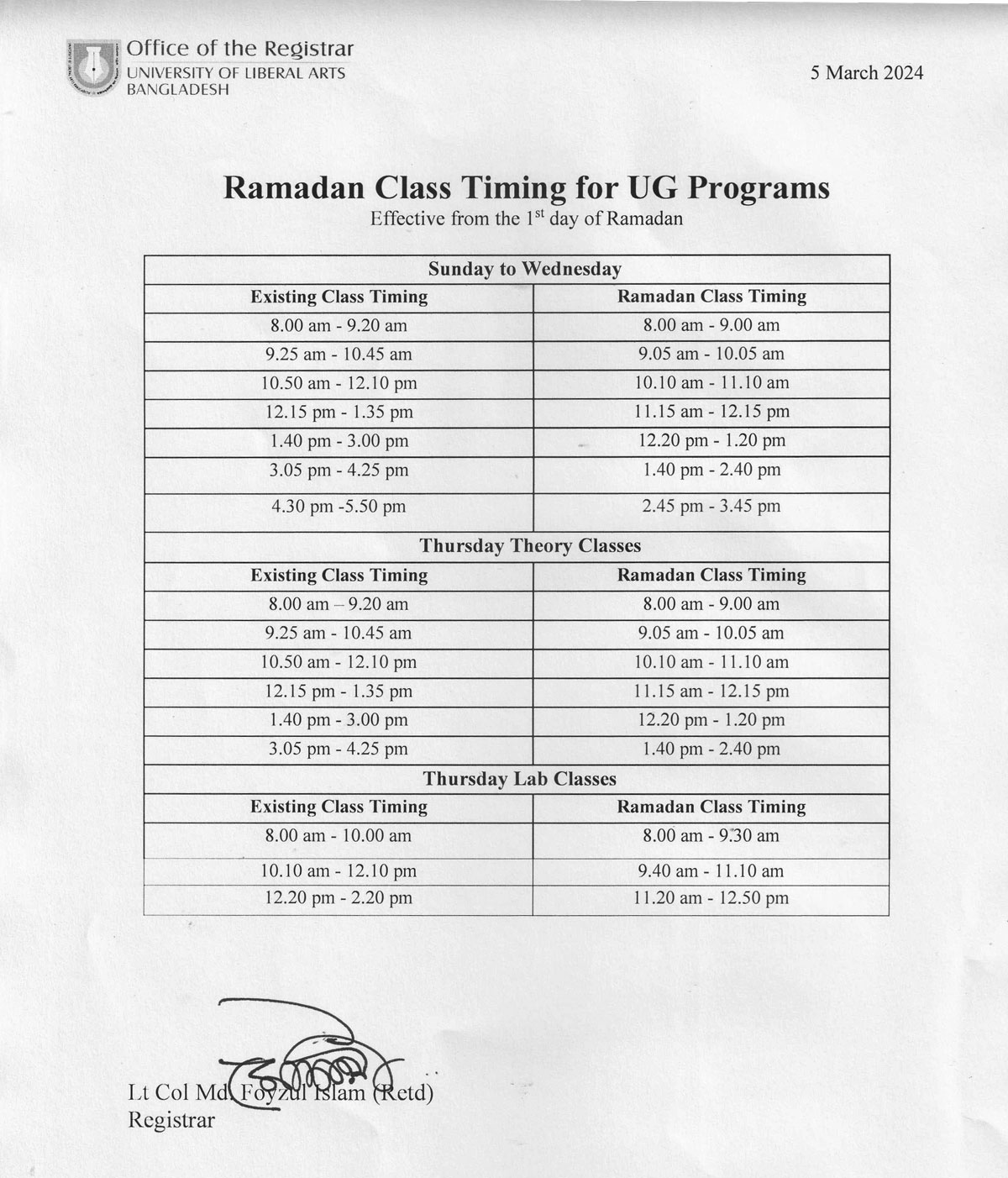 ULAB will remain closed on Monday, 26 February 2024 on account of Shab-e-Barat.
