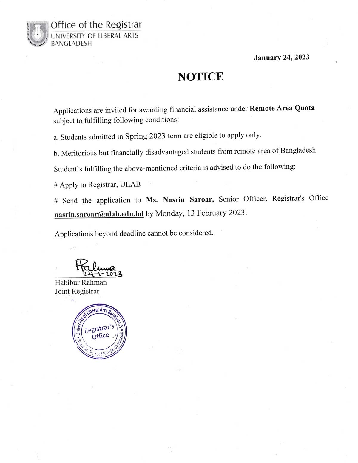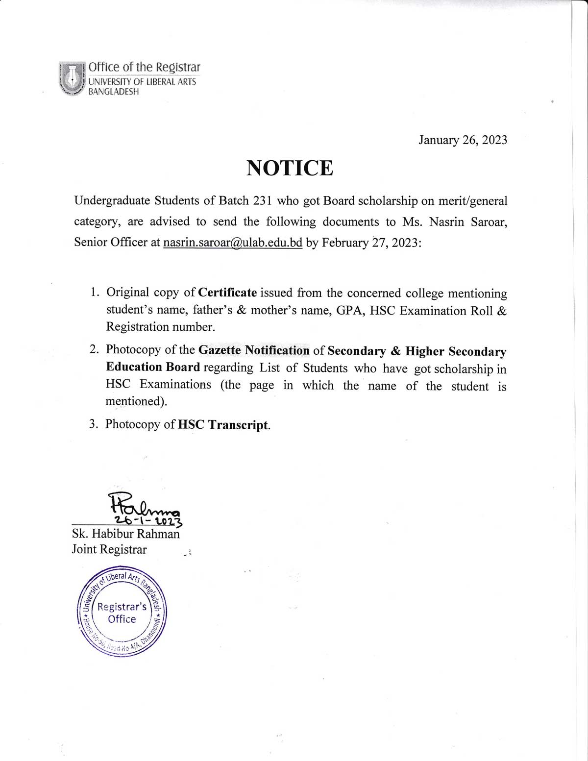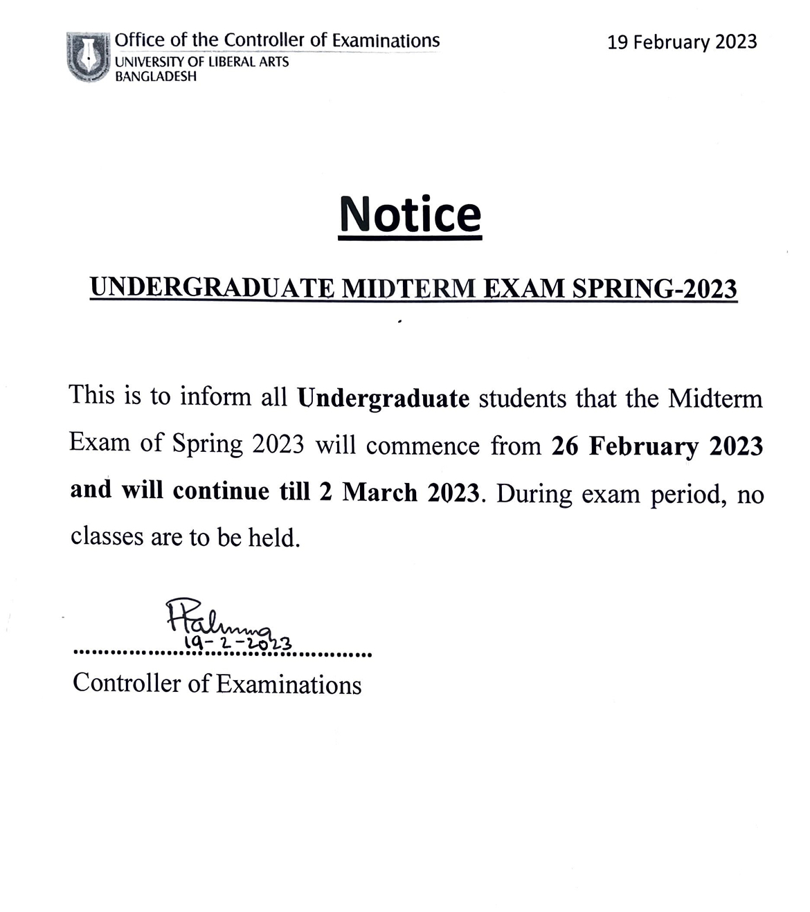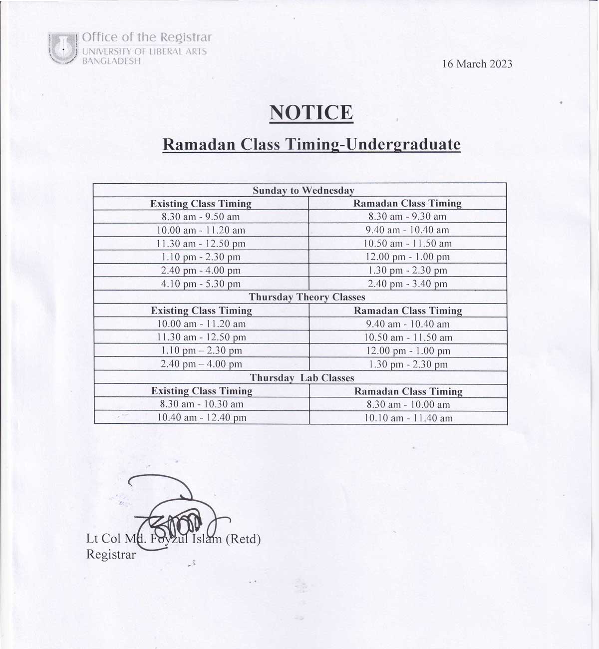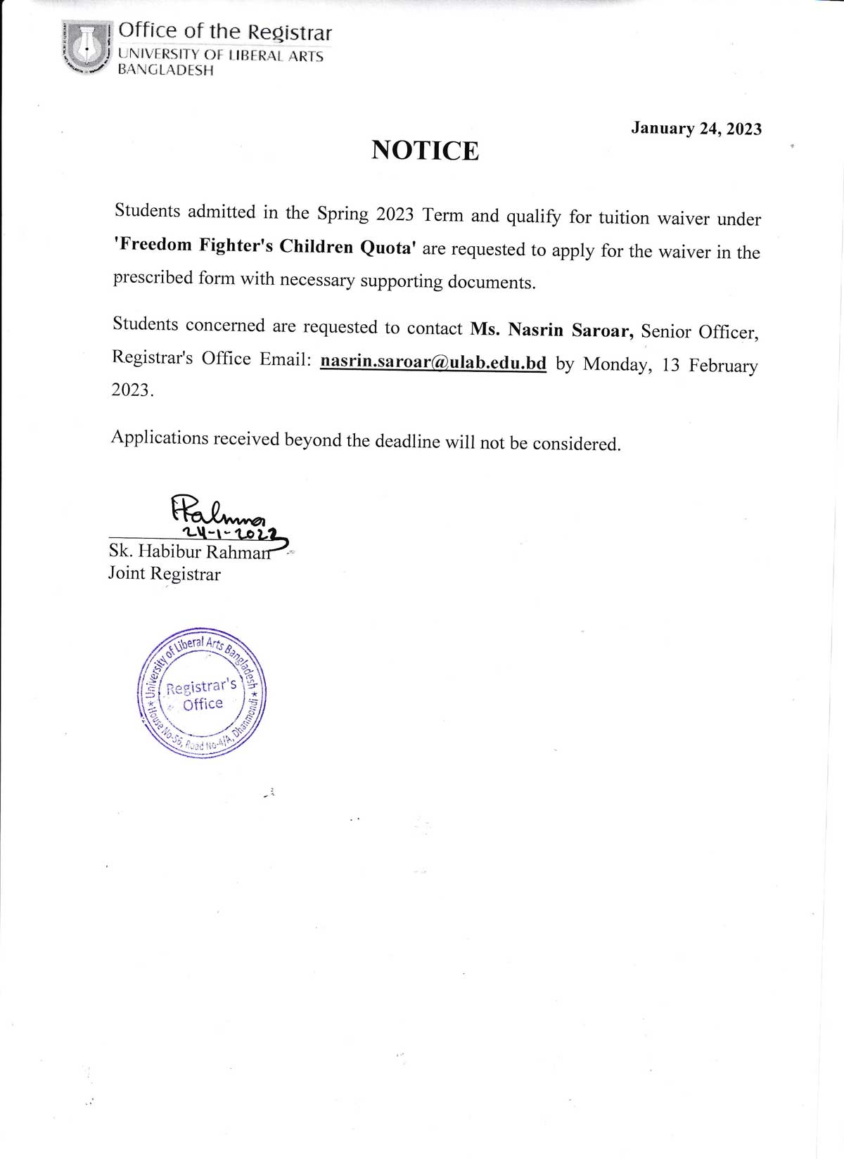 University of Liberal Arts Bangladesh will remain closed on Tuesday, 21 February 2023 on account of Shaheed Dibosh and International Mother Language Day.