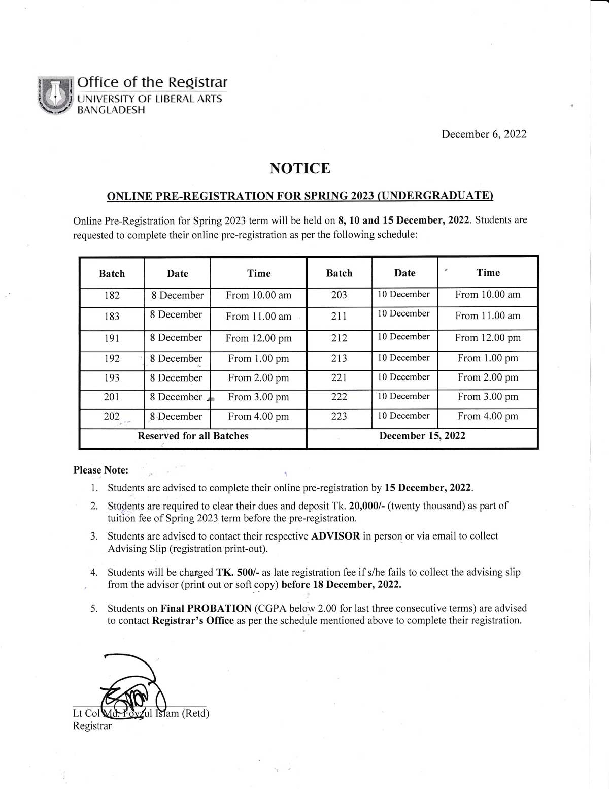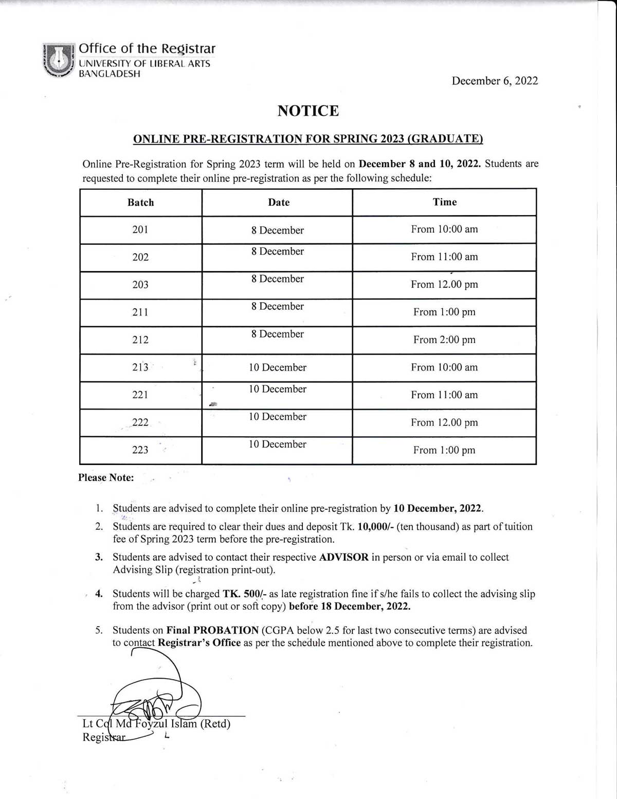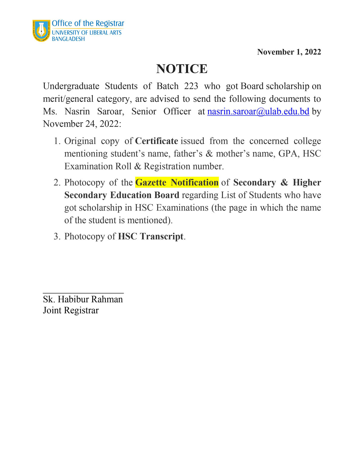 This is to inform you that due to the ongoing cyclone SITRANG, all academic activities including class and exam at ULAB will remain suspended tomorrow, October 25, 2022.