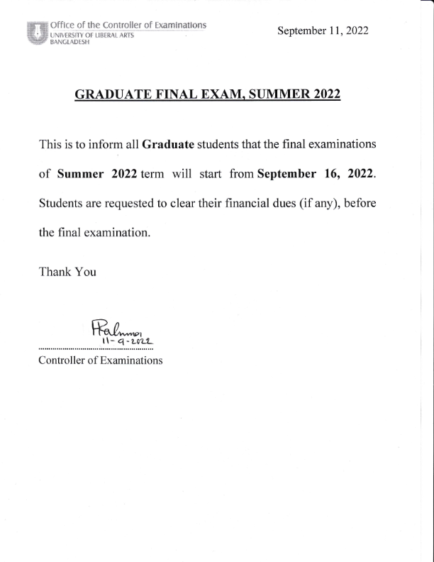 University of Liberal Arts Bangladesh will remain closed on Sunday, October 9, 2022 on account of Eid-e-Milad-un Nabi.