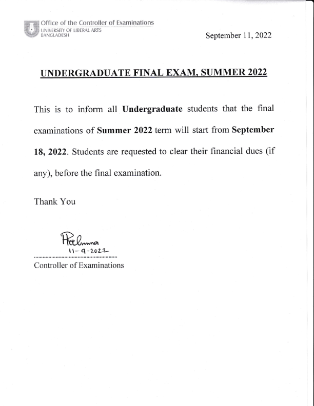 University of Liberal Arts Bangladesh will remain closed on Tuesday, October 4 and Wednesday, October 5, 2022 on account of Durga Puja.