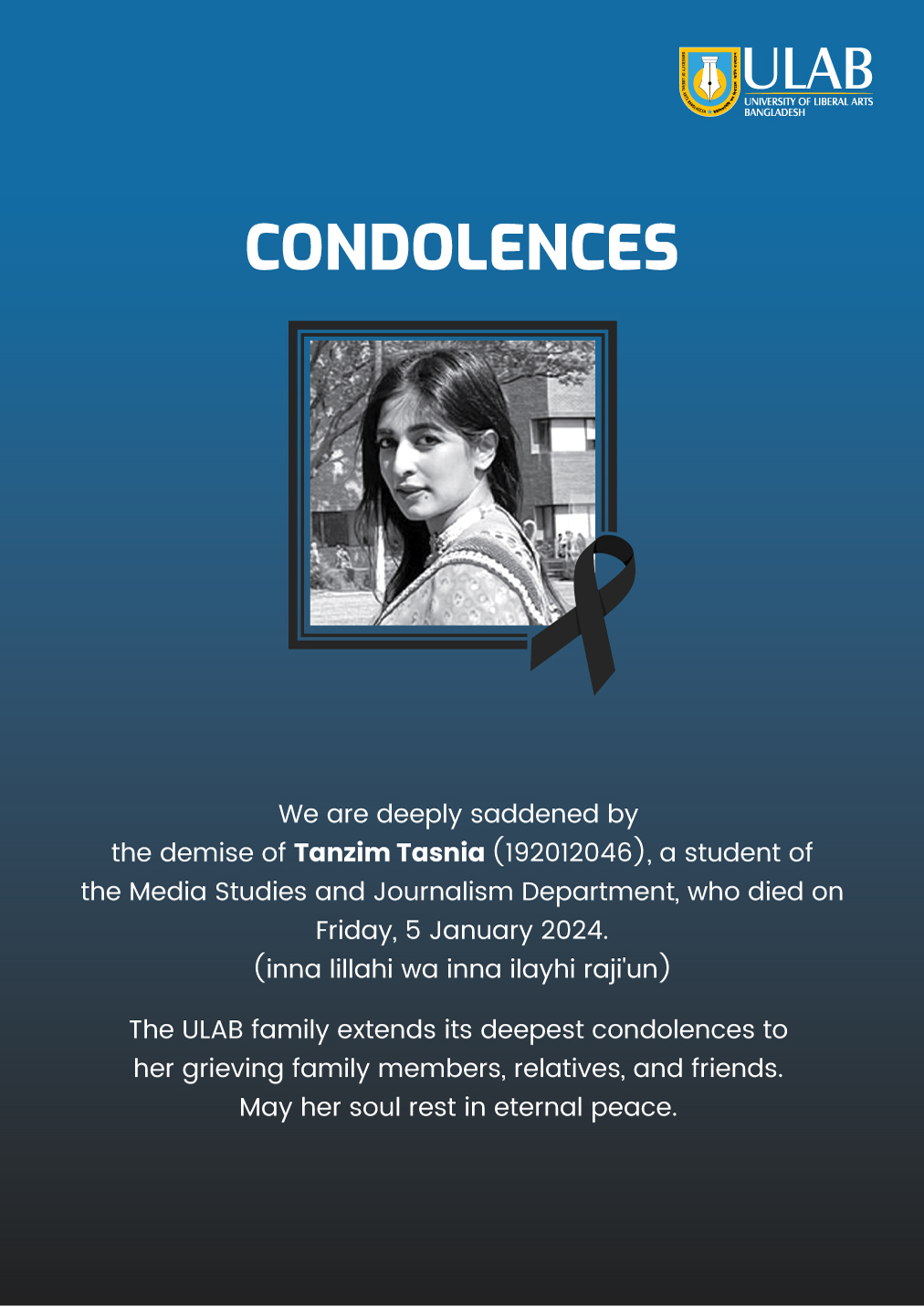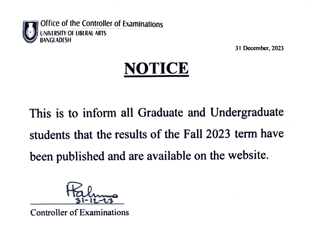 ULAB will remain closed on Saturday, 16 December 2023 on account of the Victory Day.