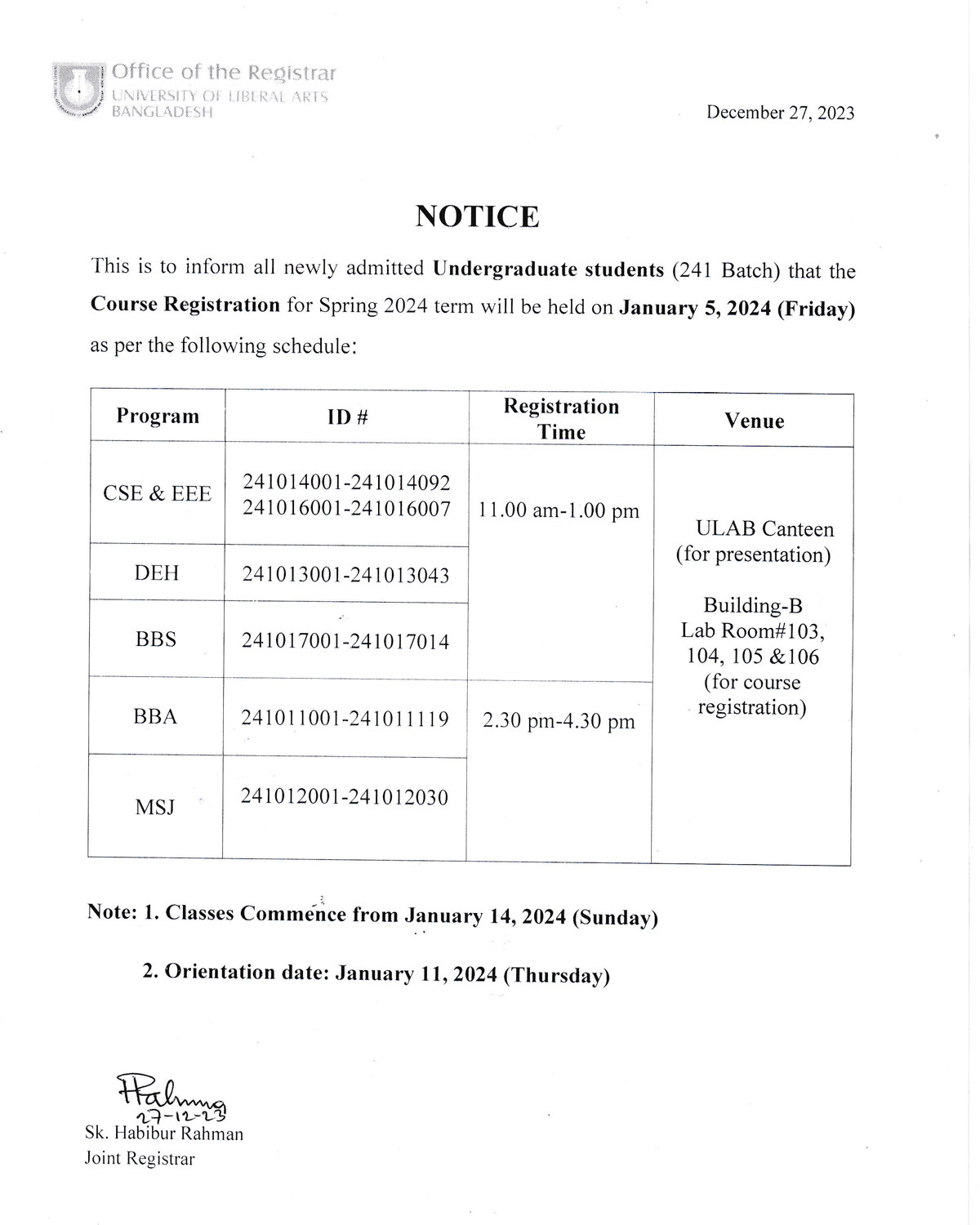 ULAB will remain closed on Monday, 25 December 2023 on account of Christmas Day.
