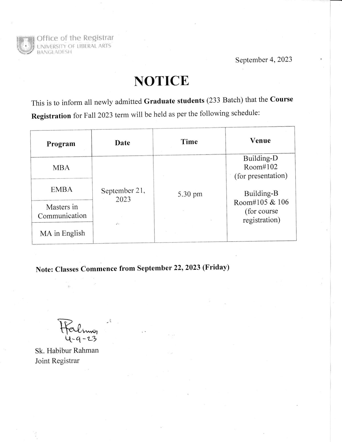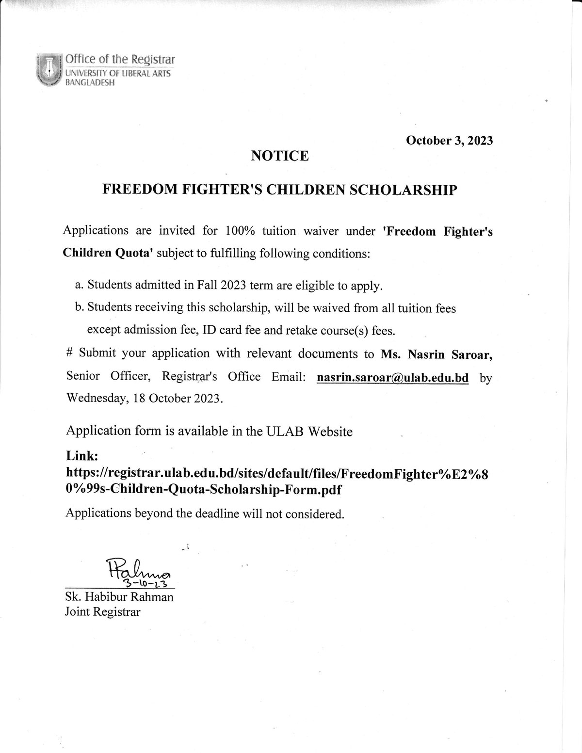 University of Liberal Arts Bangladesh will remain closed on Thursday, September 28, 2023 on account of Eid-e-Milad-un Nabi.