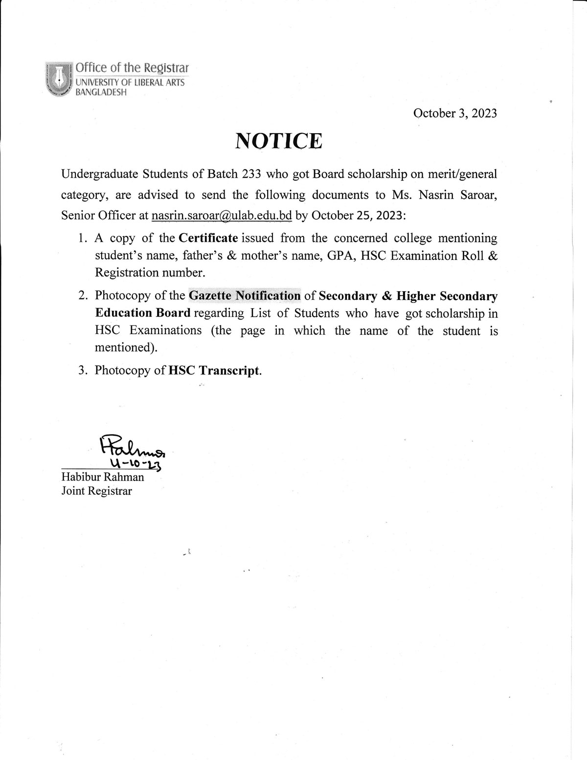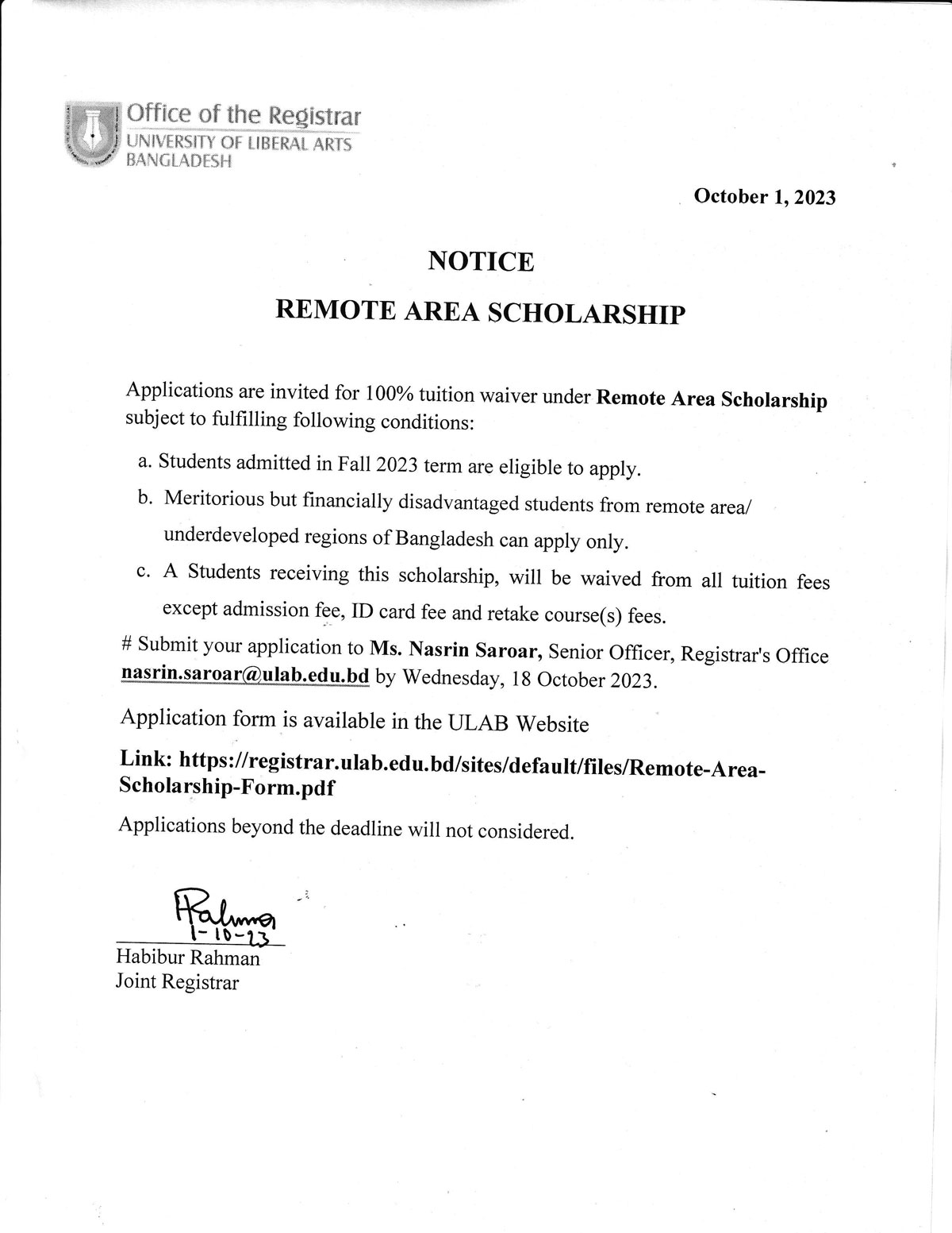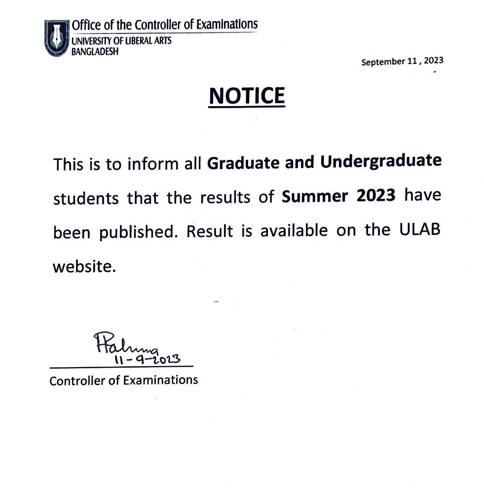 ULAB will remain closed on Monday, October 23 and Tuesday, October 24, 2023 on account of Durga Puja.