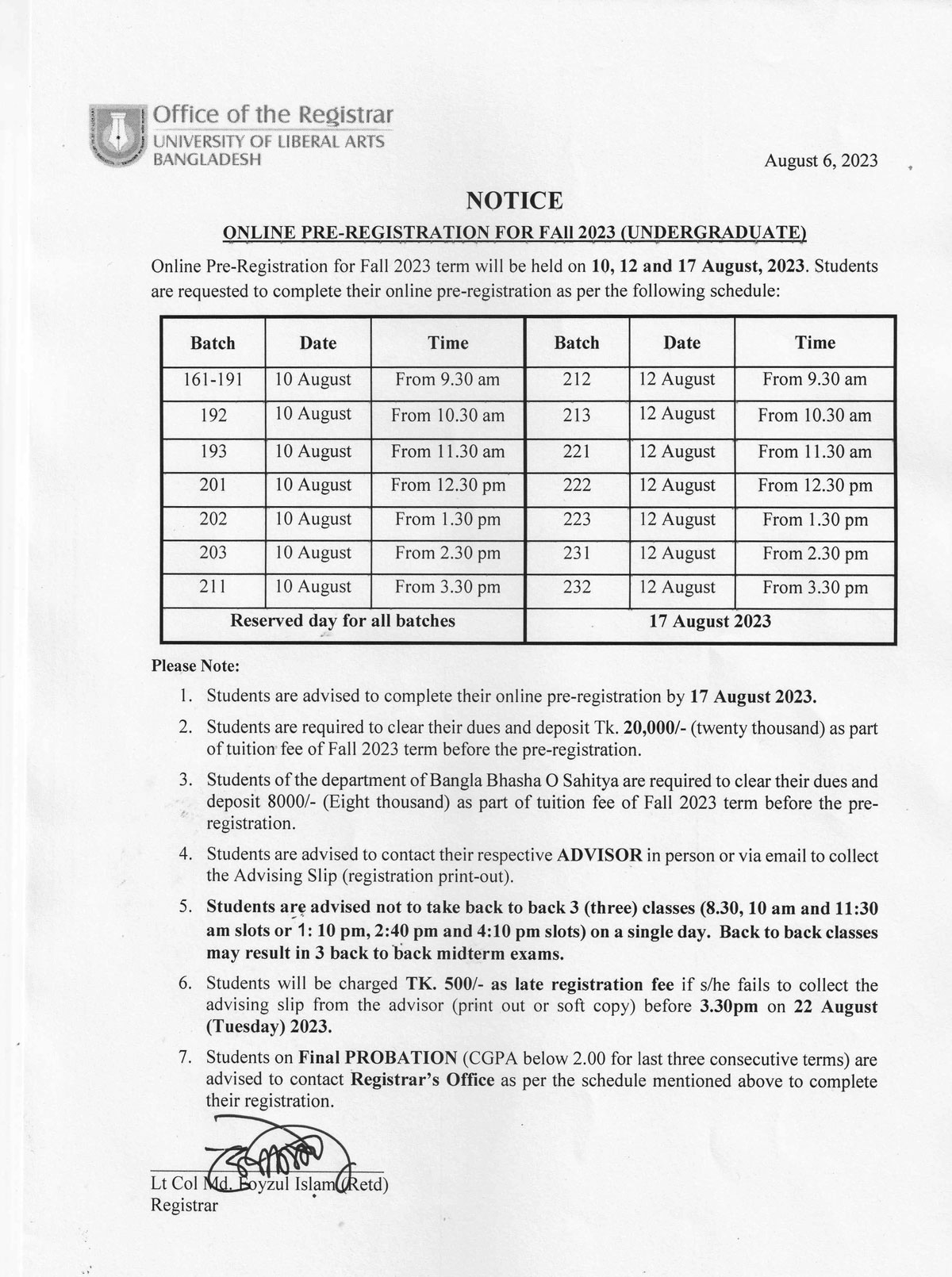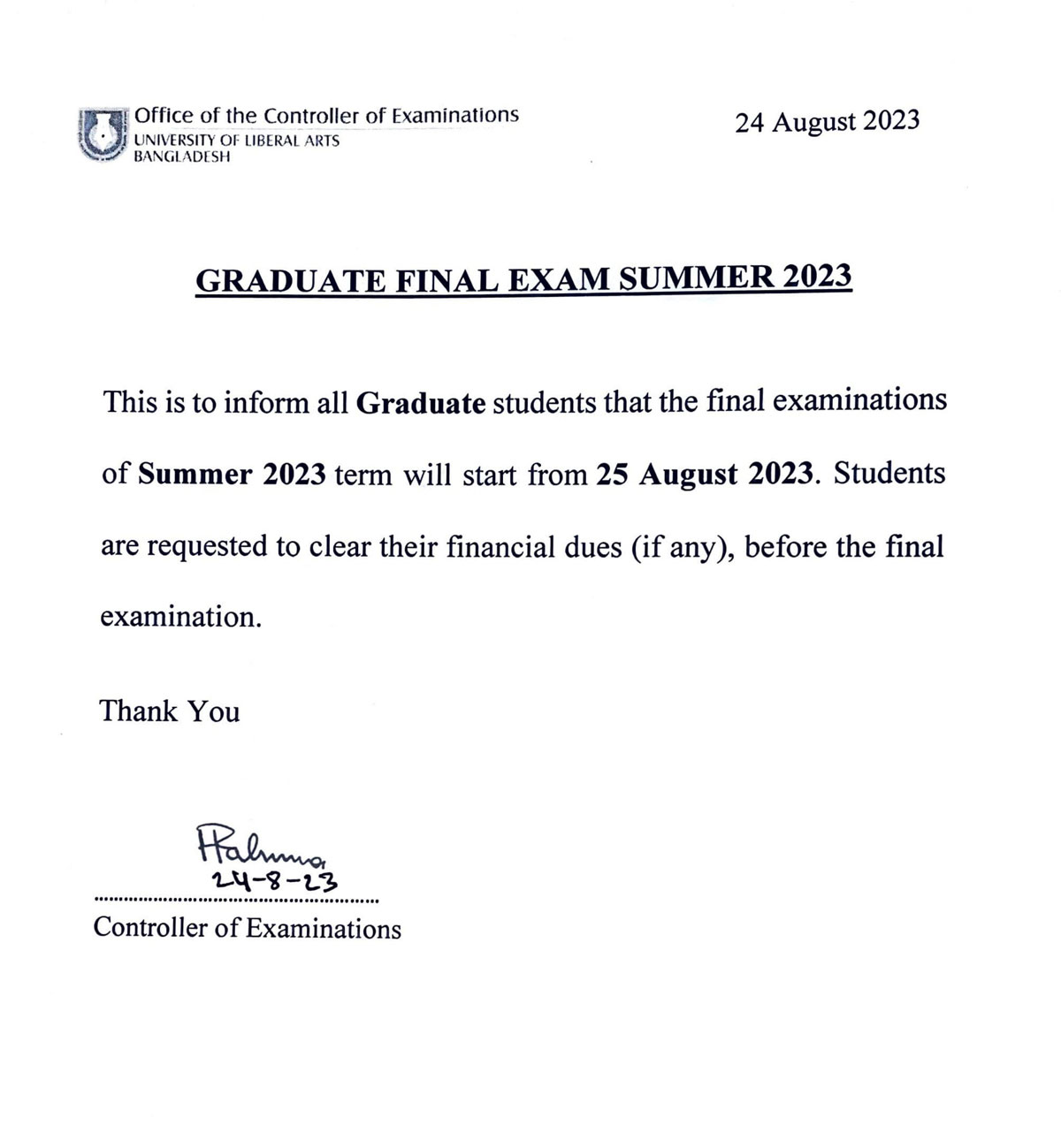 All Academic activities of ULAB will remain suspended on Tuesday, 15 August 2023 on account of National Mourning Day.