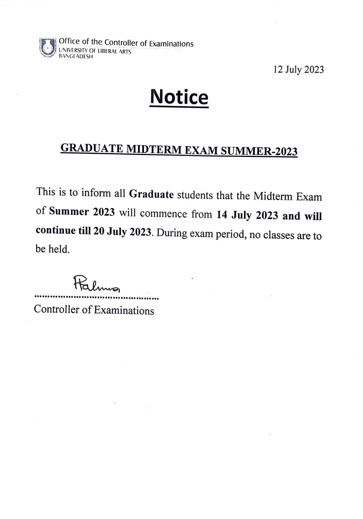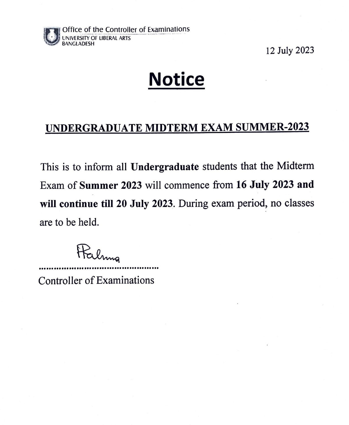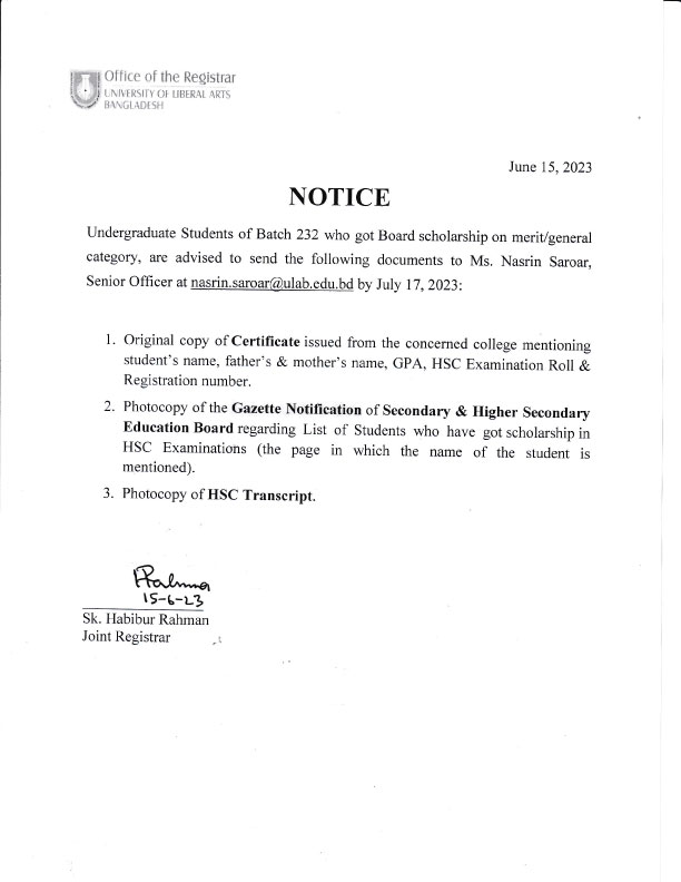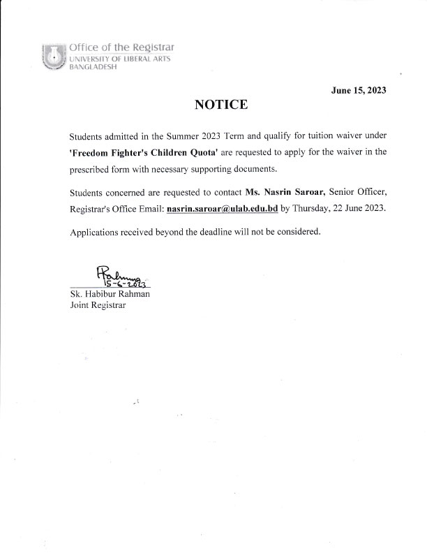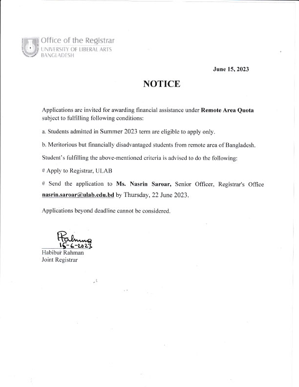 ULAB will remain closed on Saturday, July 29, 2023 on account of Ashura.