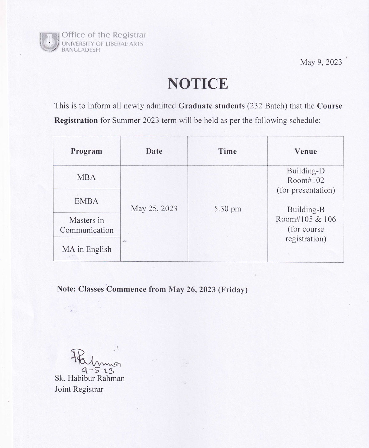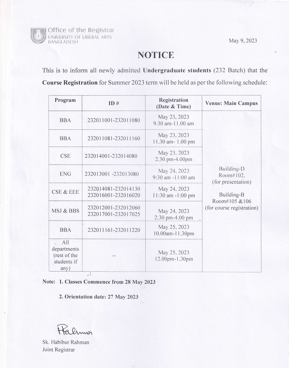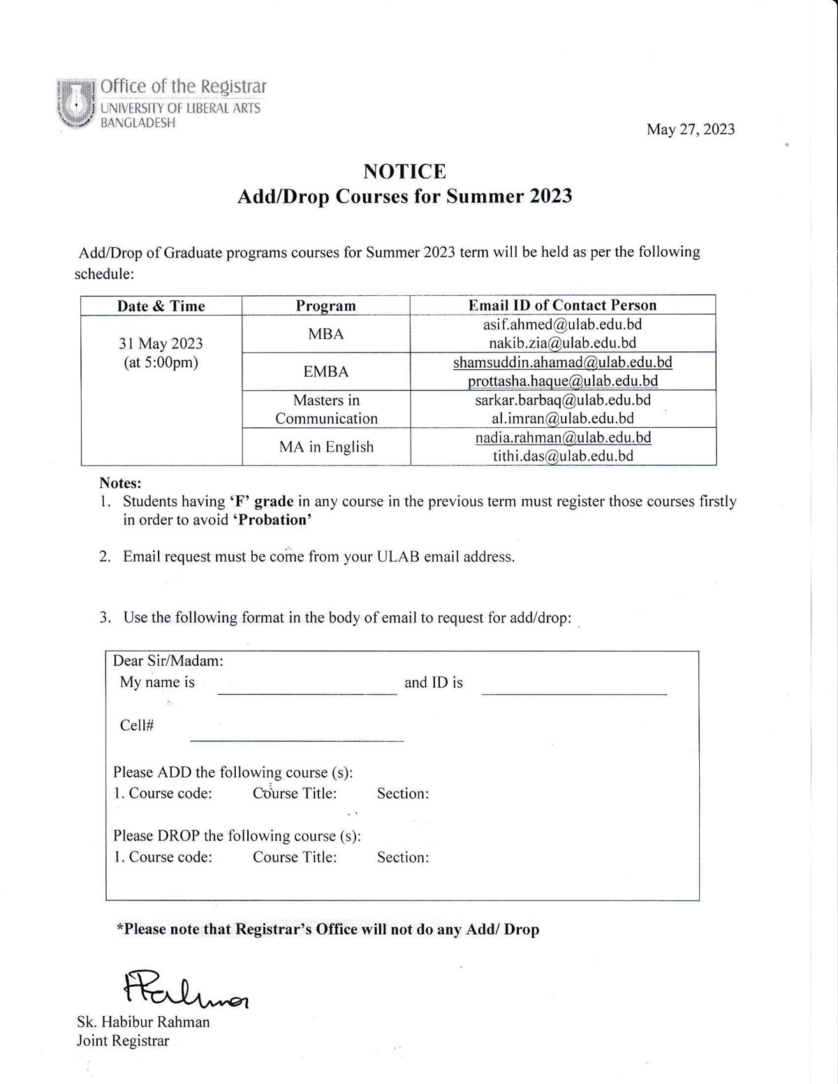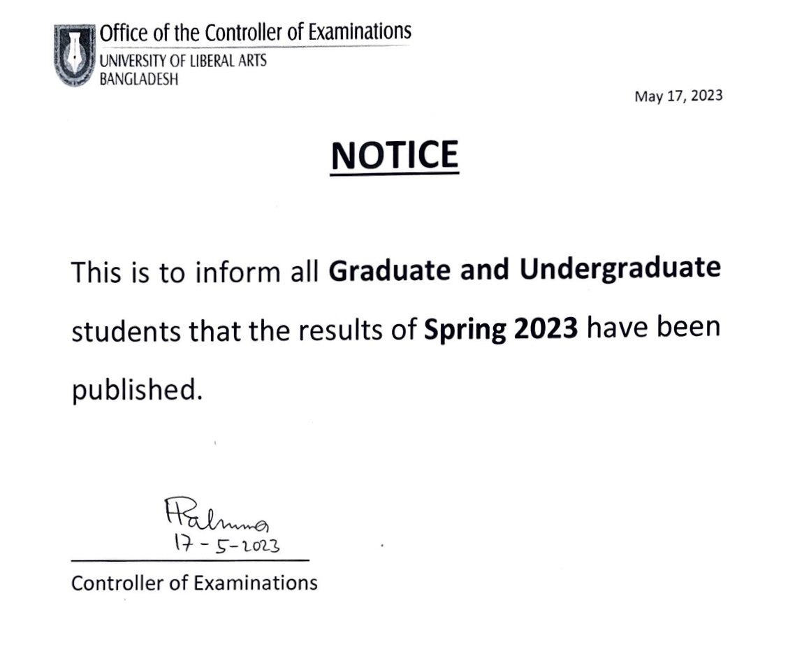 ULAB will remain closed on Monday, May 1, 2023 on account of May Day.