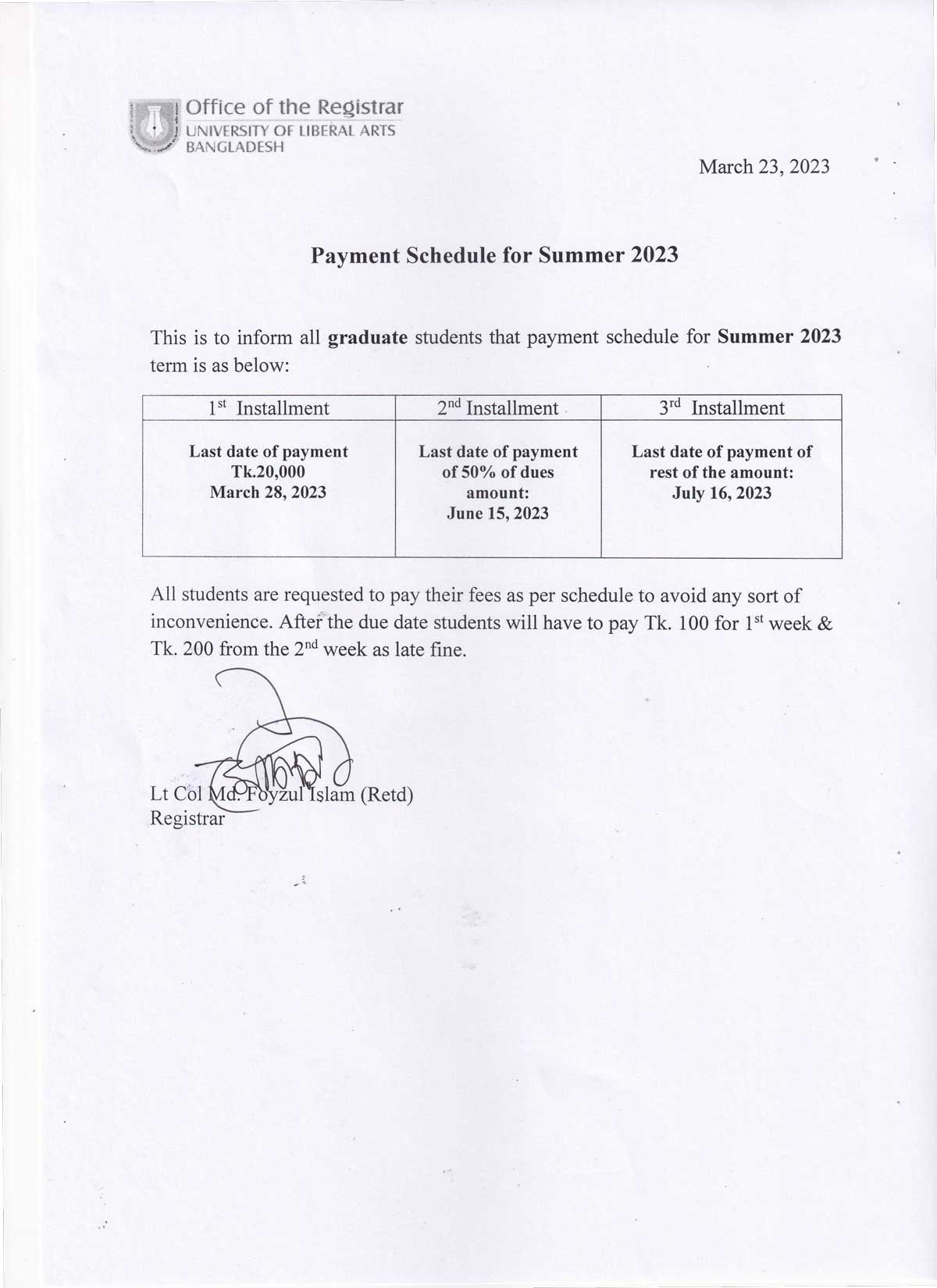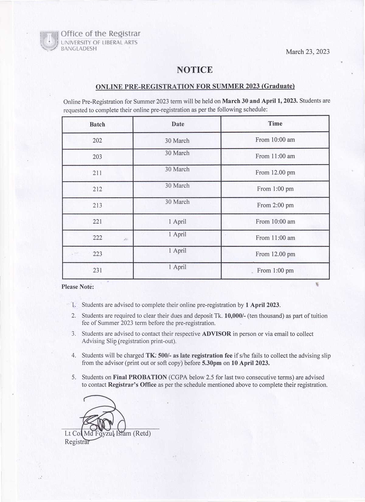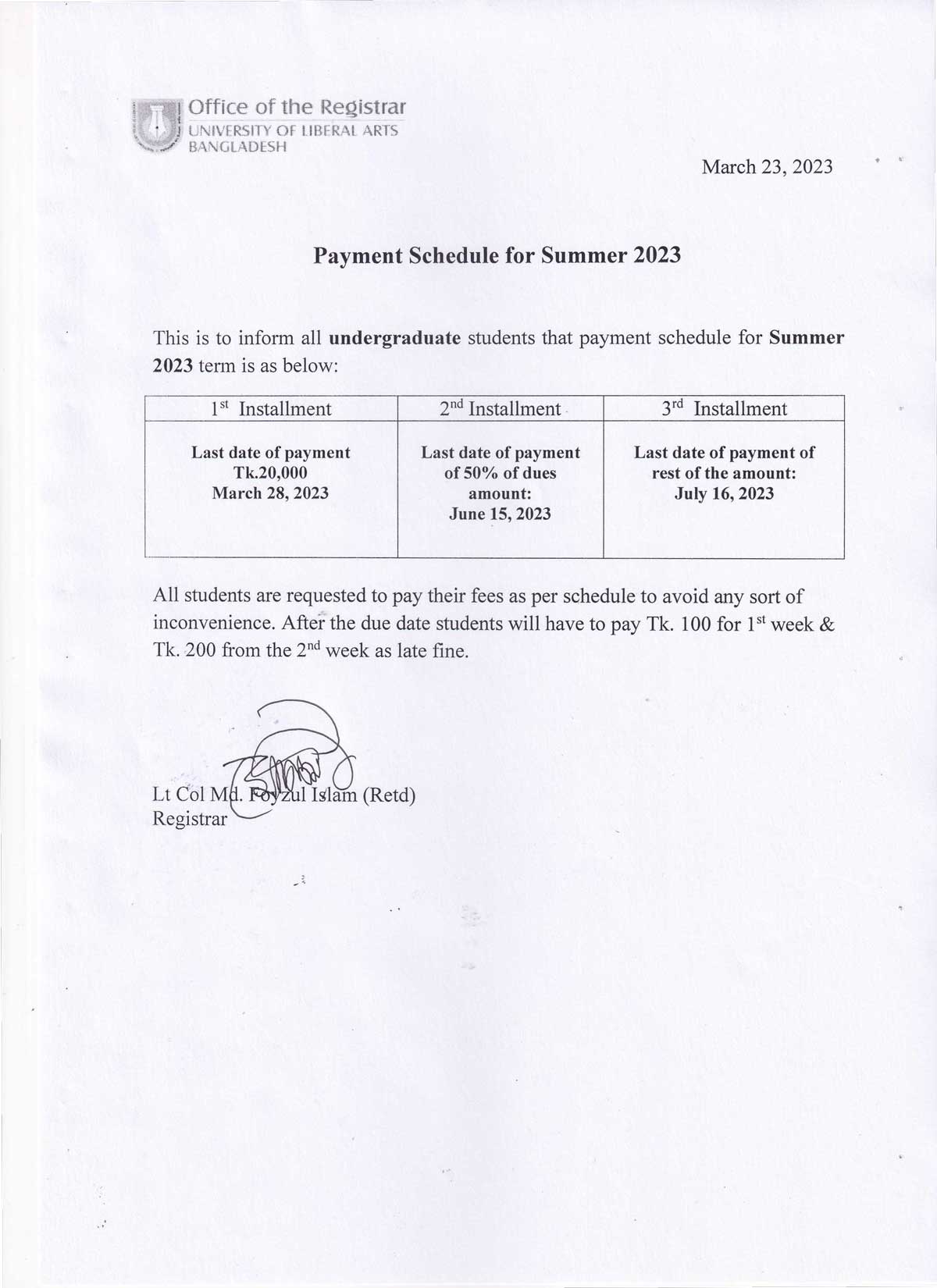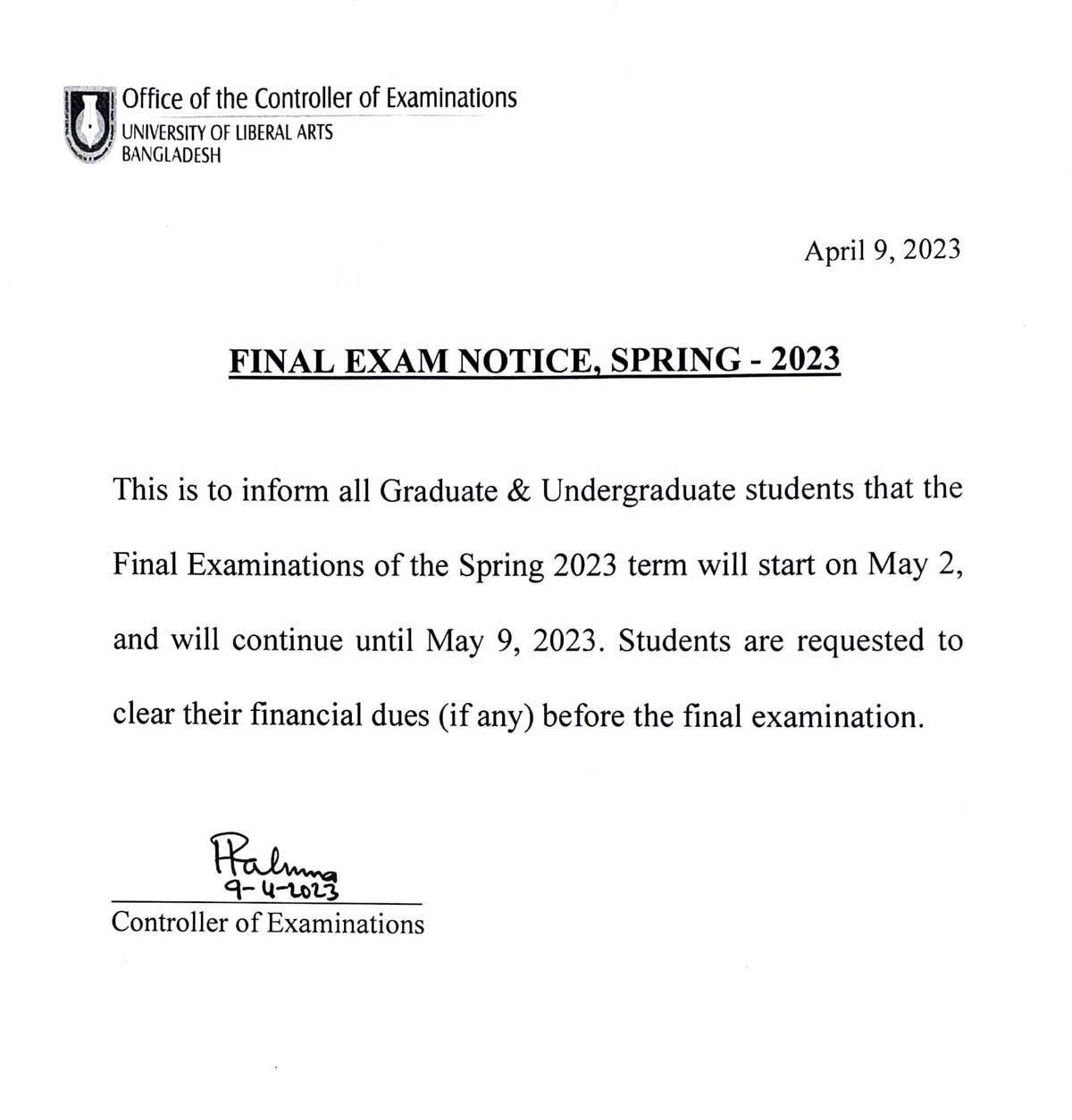 ULAB will remain closed on Sunday, 26 March 2023 on account of Independence Day.